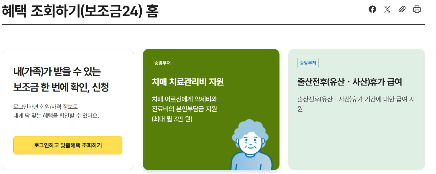 받을 수 있는 정부 지원금은 정부 24 서비스에서 함께 확인해 보는 것이 편리합니다.