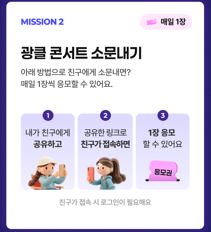 3. 공유 미션 활용 — 가족/지인과 서로 공유하여 추가 응모권을 얻는 것도 도움이 됩니다.