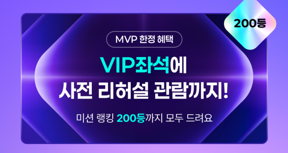 - VIP 혜택: 응모권 최다 보유 상위 200명 → VIP 좌석 + 가수 사전 리허설 관람