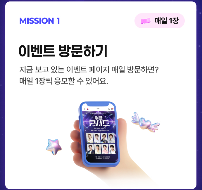1. 행사 기간 동안 매일 앱 접속 — 기본 응모권을 꾸준히 모으세요.