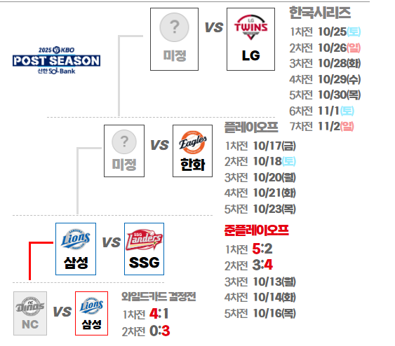 - 진출팀: 한화 이글스 vs 삼성 라이온즈 또는 SSG 랜더스